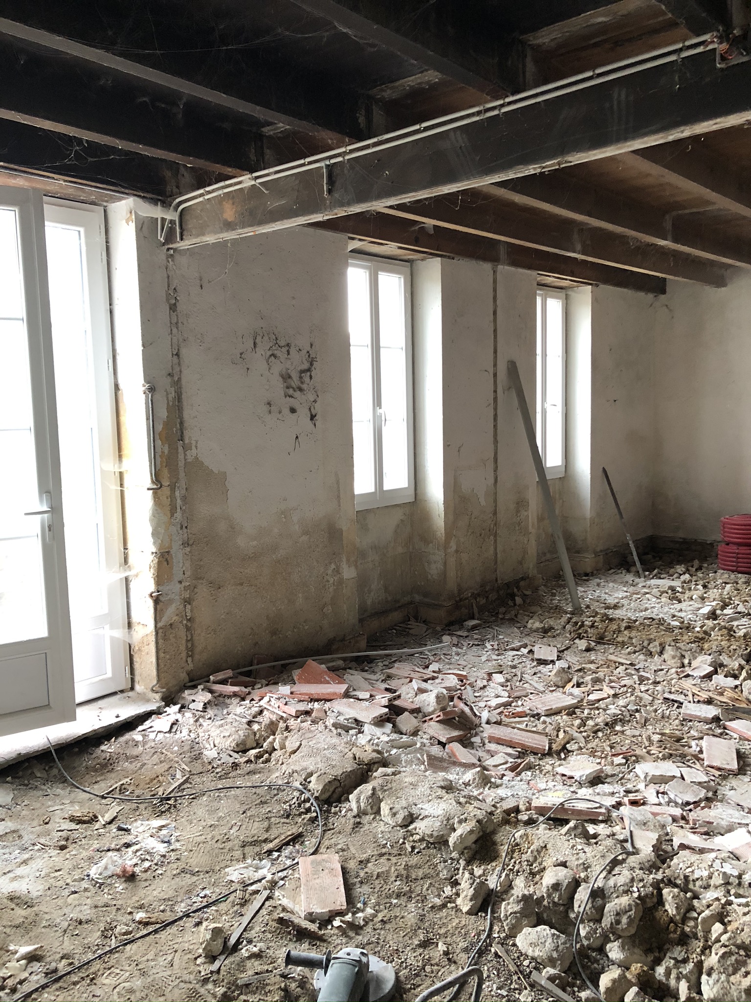 Les travaux ont donc commencé en mai 2019 par la destruction des cloisons et du plancher déjà existant.