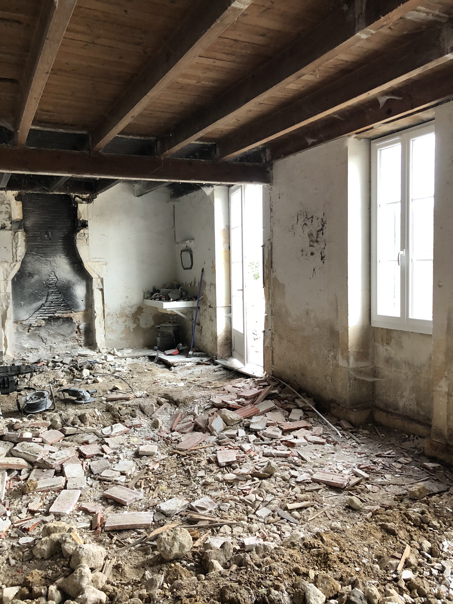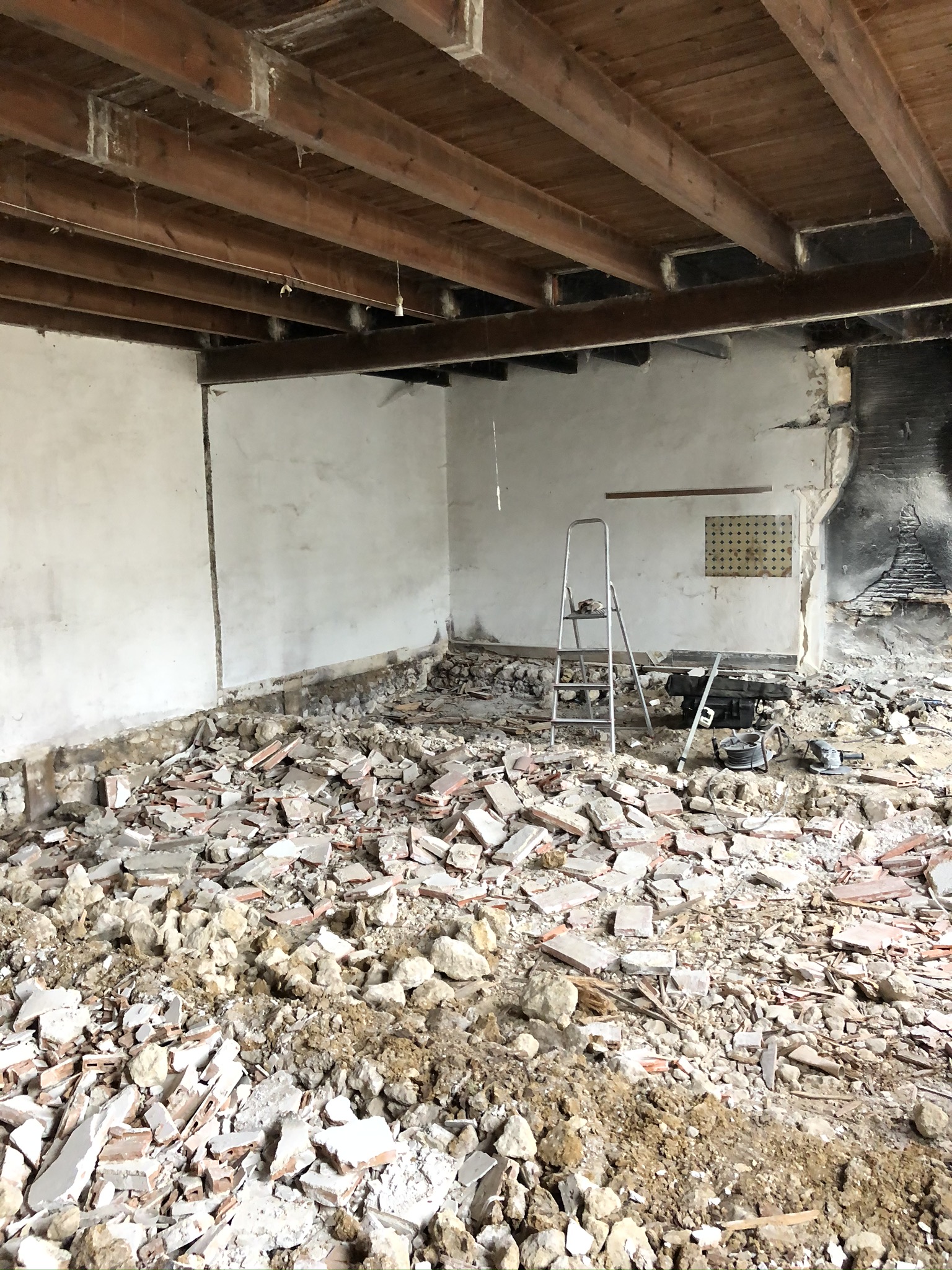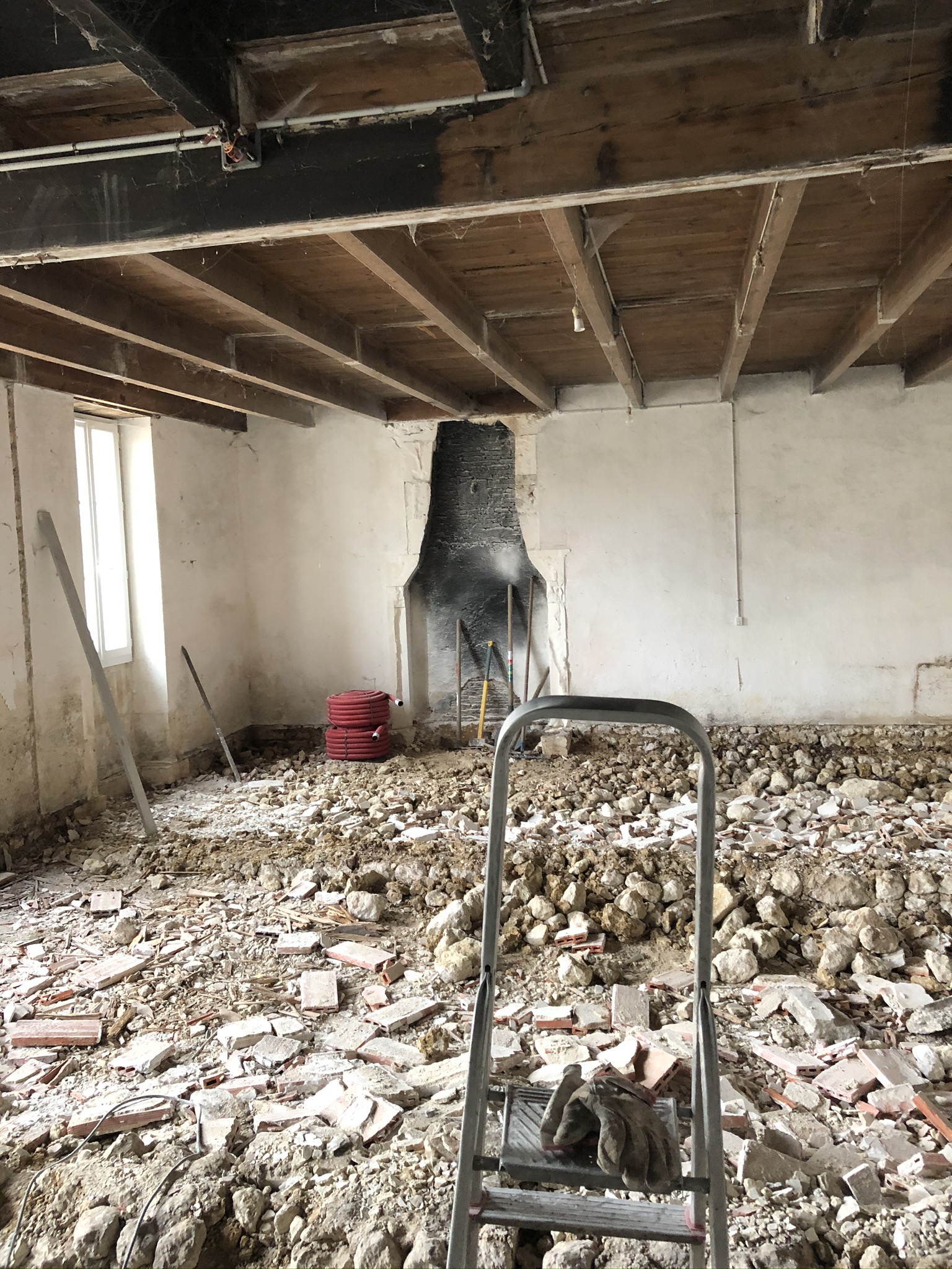 Les travaux ont donc commencé en mai 2019 par la destruction des cloisons et du plancher déjà existant.