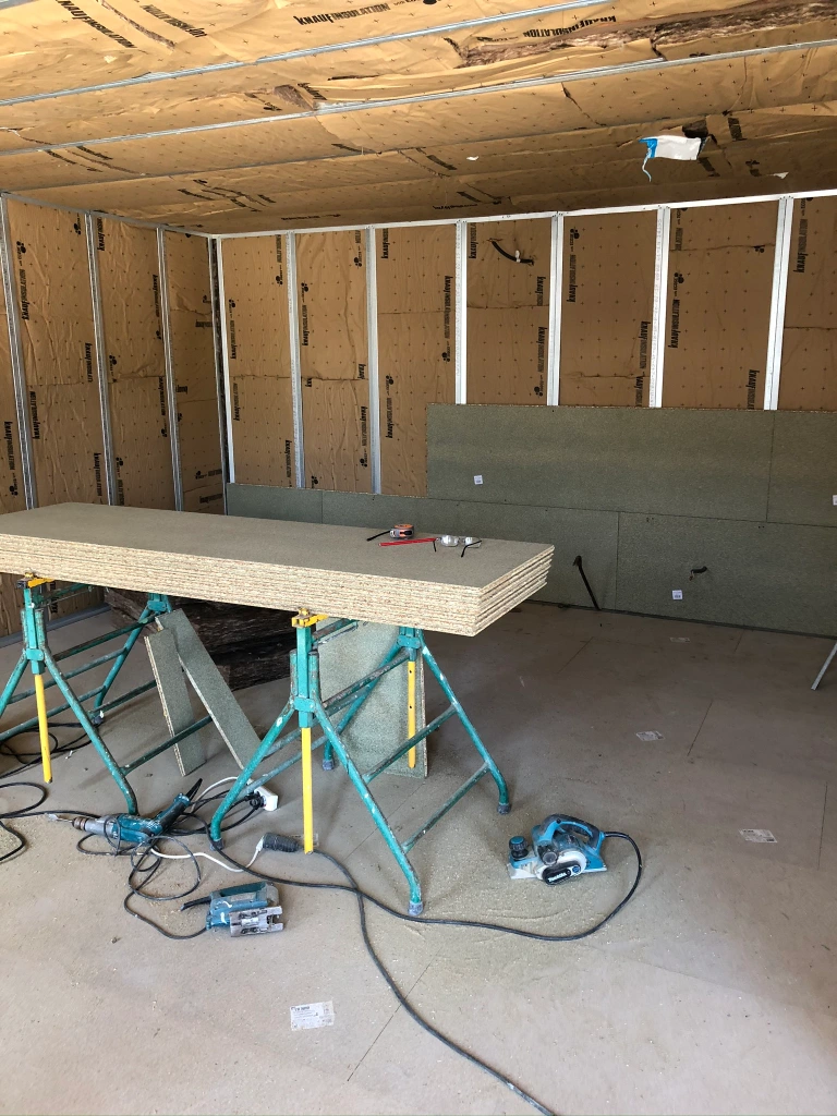 Mars 2020: Réalisation de l’isolation phonique et des cloisons