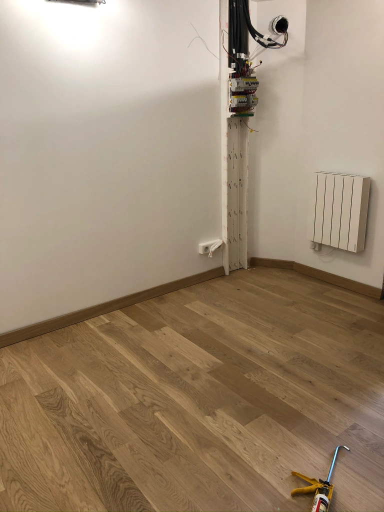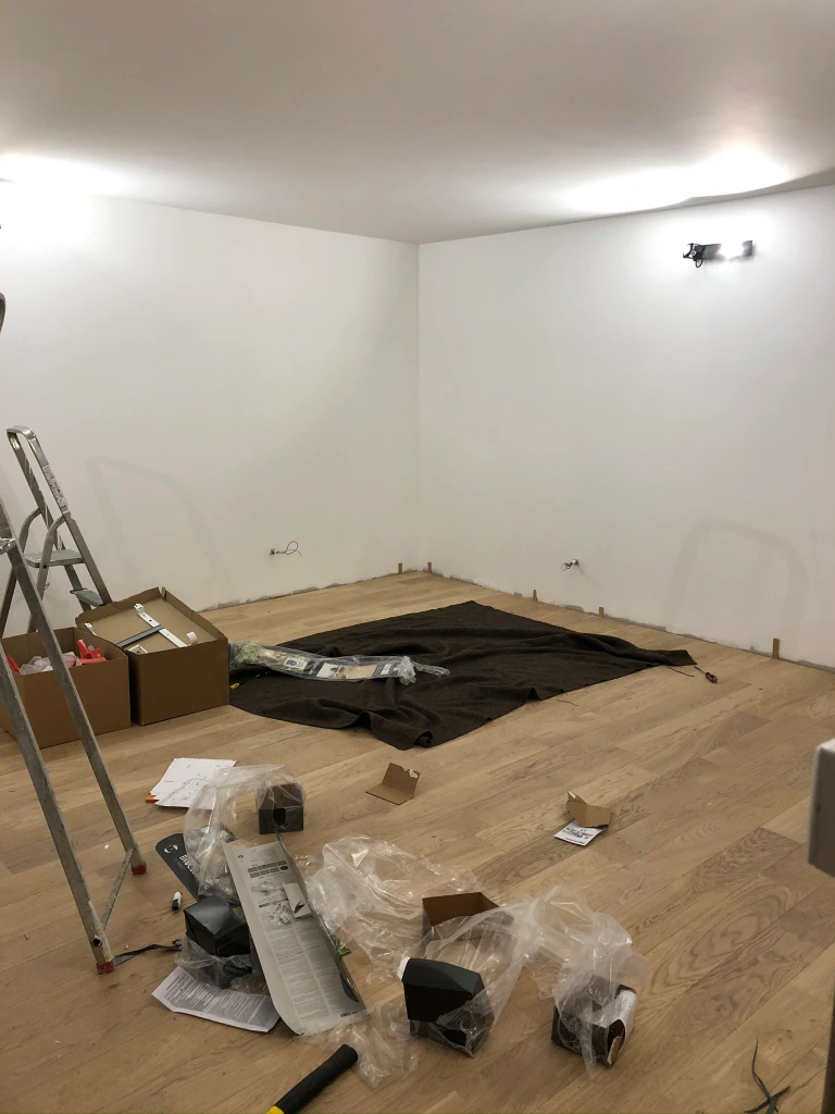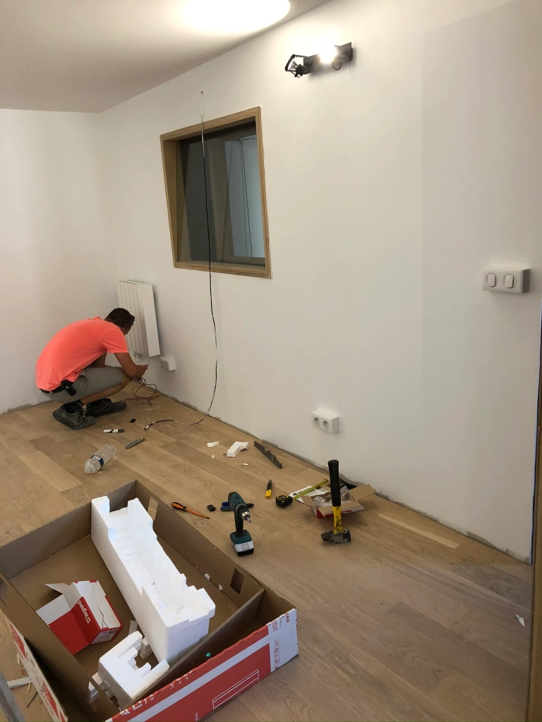 Après la pose du parquet, ainsi que la peinture, place à l’électricité ! Le projet prends forme, et laisse enfin apercevoir une idée finale de réalisation !