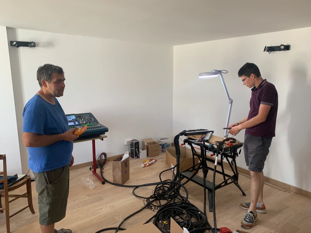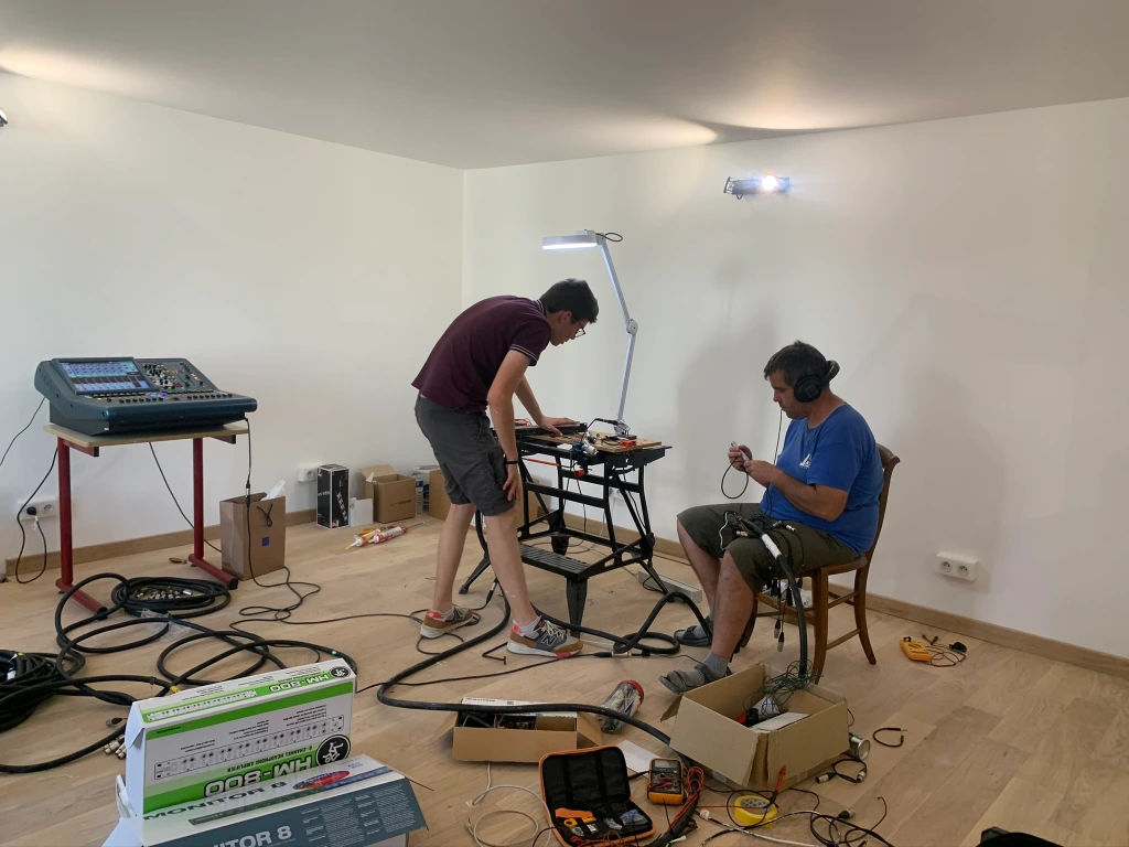 Travaux réalisés par l’acousticien Jean-Marie Roussel et Olivier Neaume de la société Clip Audio à Saint Jean d’Angély. Une étape cruciale, mais réalisée avec succès. Les travaux touchent à leur fin, désormais, place à la musique !
